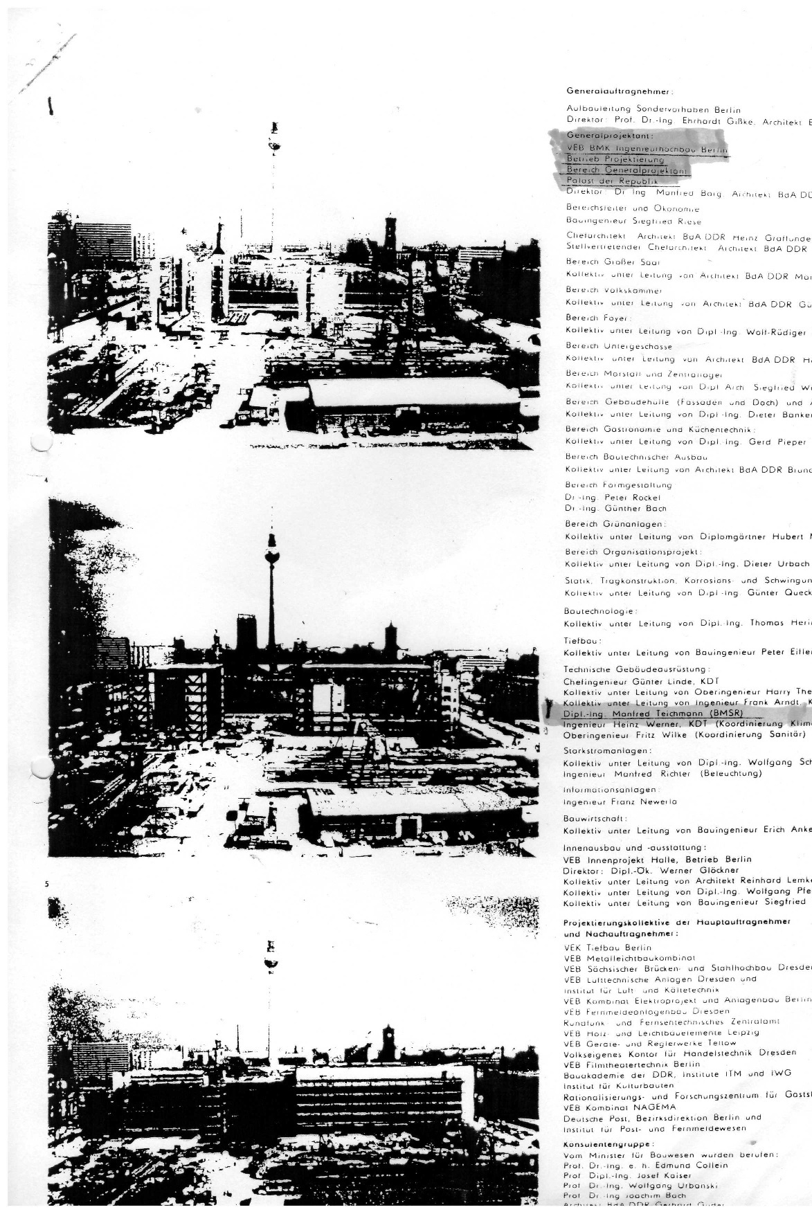 Hauptsächlich Tätigkeit beim Aufbau des EVW Schwedt, Leuna 2 und dem Stadtzentrum von Ost-Berlin